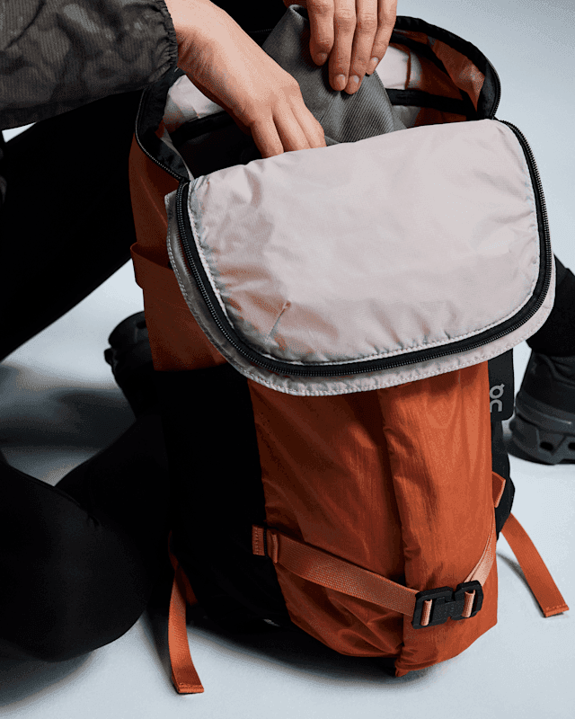 Made to grab and go, with rope handles – crafted from Swiss-made Seil – that add a touch of alpine-inspired style. A stowable rain cover keeps your kit dry, while hose ports allow you to carry a water bladder. It’s ready for adventure whenever you are.