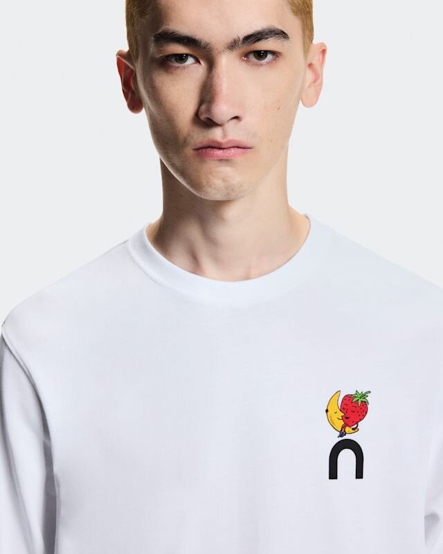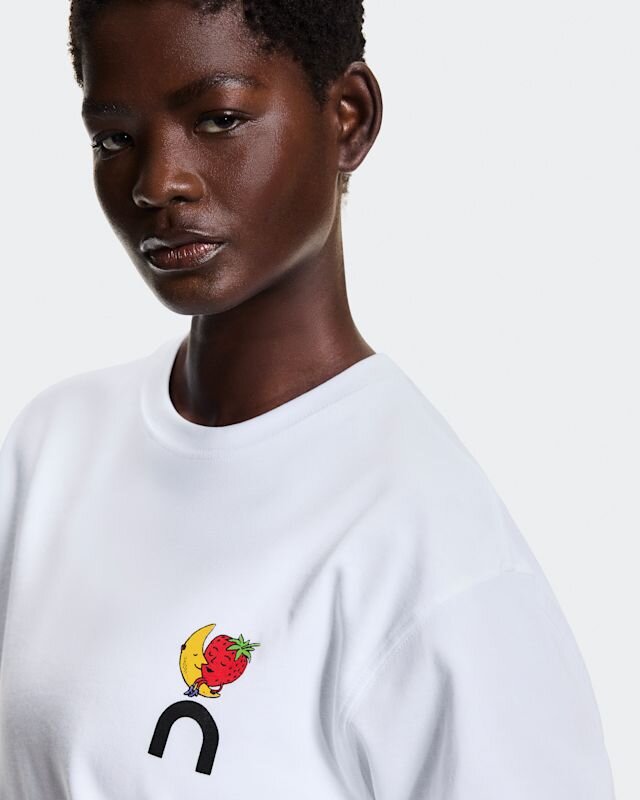 Crafted with a heavyweight premium cotton fabric that feels good to wear. It features a playful On × SHF logo lock-up on the front, and an exclusive text print on the back.