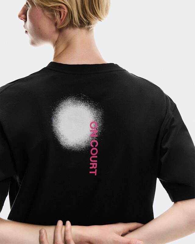 The front is clean and minimal with a small On logo on the chest. While the back delivers a subtle nod to our favorite game, with a graphic that represents the ball in play. Simple. Stylish.