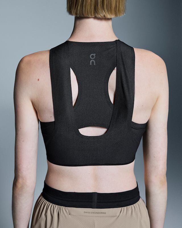 Based on feedback from our athletes, we added vertical straps to the top’s racerback construction for added stability and support. Bonded seams provide maximum on-skin comfort.