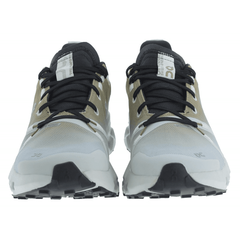 The On Cloudsurfer Trail Waterproof in Safari/Mineral is a stylish and functional trail running shoe for women. Its waterproof technology keeps feet dry, while CloudTec cushioning provides comfort and impact absorption. The multi-directional lugs offer grip on wet trails, and the breathable upper ensures ventilation. This shoe combines performance and aesthetics for confident trail running.